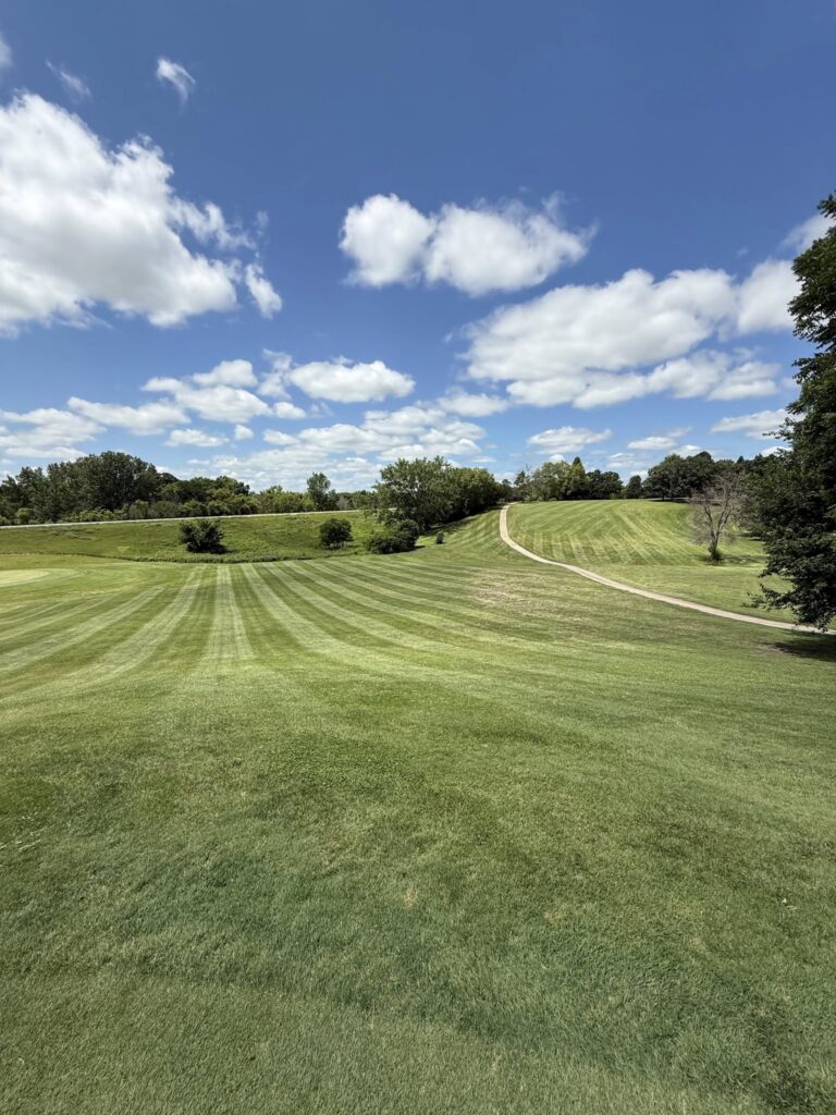 The par-72 golf course at Briggs Woods in Webster City, Iowa stretches to just over 6500 yards from the back (blue) tees.